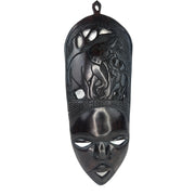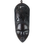 This Wooden Safari Animal Ebony Mask is handmade by the Shona artisans in Zimbabwe, South Africa. It is set in the wonderful natural colors of the dark black/brown color of the Ebony wood and smooth polished in the natural black color of the wood. Ebony a very hardwood that makes for excellent carving and is one of the more expensive woods in Africa. The mask is of a tribesman's face hand engraved with safari animals on the forehead. The ebony mask can easily be framed and will make an excellent wall hanging.