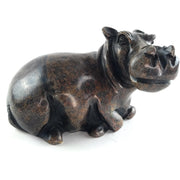 This African Hippo (Hippopotamus) sculpture is handcrafted by the Shona artisans in Zimbabwe. Hippos are part of the “Big Five” animals in Africa. Hippos live in sub-Saharan Africa in areas with abundant water, as they spend most of their time submerged to keep their skin cool and moist. The hippopotamus an aquatic mammal that cannot swim, a vegetarian that is also the most dangerous animal in Africa. This art form is known as Shona sculpture because it is hand-carved by the Shona people of Zimbabwe. The Shona people have been hand sculpting stone into works of art for nearly a thousand years.