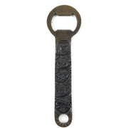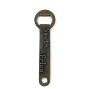 This Bottle Opener is handmade by artisans in South Africa. Each piece is individual and unique. The bottle opener has been cast from zinc and electroplated with an antique brass finish. Each opener measures 5.25" long, 1.5" wide.