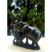 African Elephant Statue - Mother and Child Hand Carved In Zimbabwe