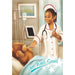 An African American Get Well Soon Card adorned with an image of a beautiful young lady playing doctor to her teddy bear. This stunning greeting card measures 5x7 inches and features full-color artwork on the inside and out and a high gloss finish. The sentiments inside of this greeting card read as shown below: