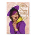 An African American Birthday Card adorned with an image of a beautiful woman. This stunning greeting card measures 5x7 inches and features full-color artwork on the inside and out and a high gloss finish. The sentiments inside of this greeting card read as shown below: