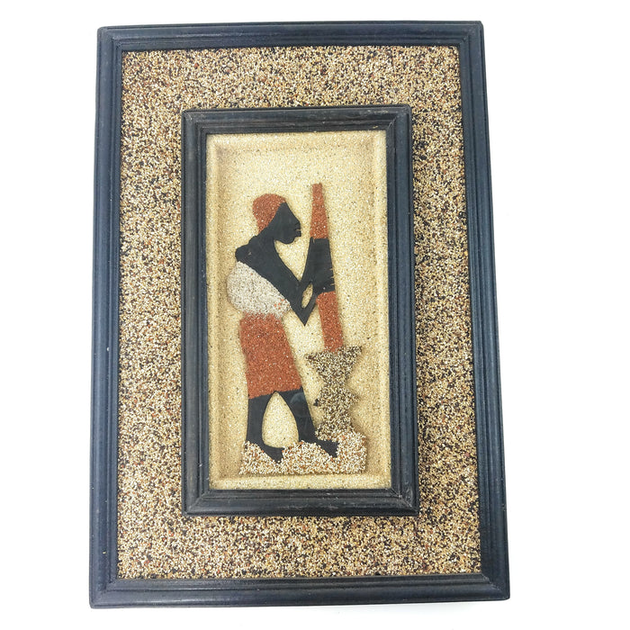 Celebrate African artistry with this Handmade Kneeling Working Woman Shadow Box, crafted by Zimbabwean artisans. Made from wood, sand, and natural fibers, it portrays a hardworking woman in a moment of daily life.